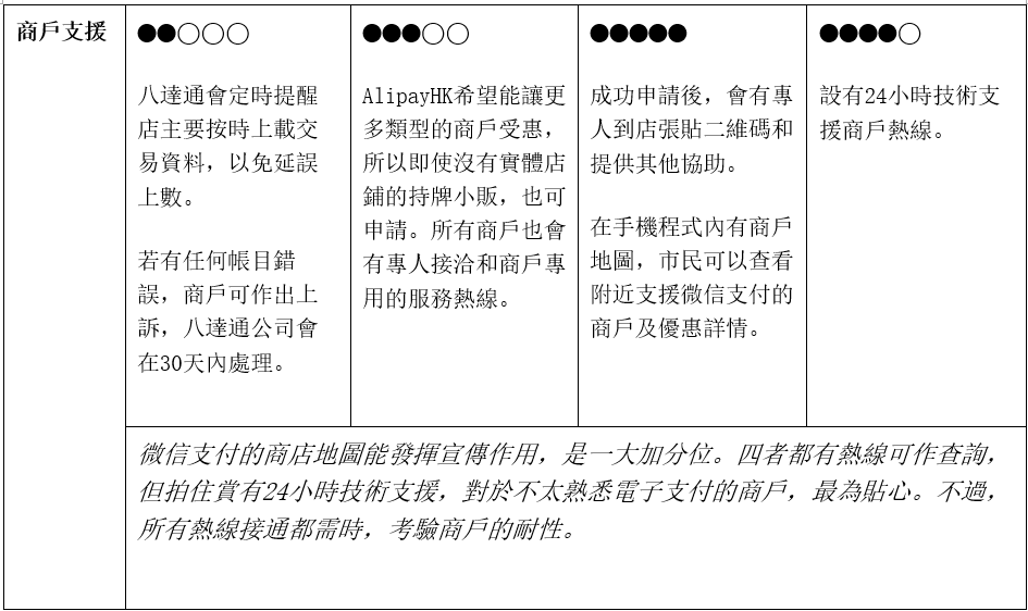 企業亦要考慮支付工具的申請程序是否繁複,營辦商對商戶有否提供足夠的支援。若申請手續太麻煩或工具太難用,就要浪費了很多時間去處理。正所謂時間就是金錢,要找一個合適的支付工具去輔助你,而非令你帶來困擾。同時要留意消費券計劃期內及完結後的收費,除非在計劃完結後你會終止使用,否則也應比較各個工具的後續收費,好好計劃這個長遠的投資。(留意:老闆不妨趁著免手續費的消費券期間,讓自己和員工熟習這套系統,認真分析收銀過程因此而便利了多少!)
