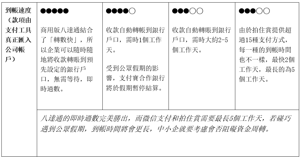 理解了兩個重要的考慮因素,就可以看看以下圖表,從五個角度去分析四種電子支付的好與壞