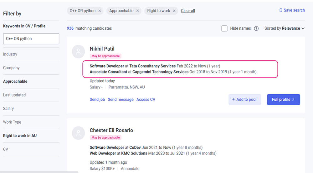 首先,HR可以利用基於人工智能的廣告分析和建議來精簡職位廣告的內容,這樣不僅縮短撰寫及刊登廣告的時間,還能有效增加求職者應徵的機會率。然後,SEEK的智能匹配系統利用先進的人工智能(AI)技術從大量求職者中篩選出100名最適合的人選,提高25%的搜索準確度,精準匹配職位需求。智能匹配系統一方面分析求職者的技能與經驗,另一方面參考僱主過往的招聘模式,確保匹配結果最佳化。企業可以根據個人化配合工作需要遷移居住地點,並完美契合職位要求的人才,從而提升招聘質量和效率。