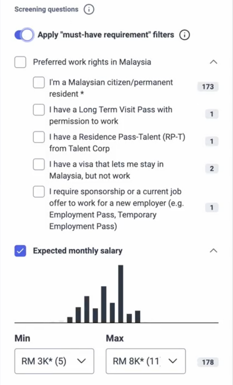 Must-have 條件能快速排除明顯不符合要求的申請者,但同時亦是最容易被「過度使用」的功能。招聘人員可能為減輕工作量,將多項條件一併設為必須符合,結果反而錯失具潛力但經驗未完全對齊的人選。較理想的做法,是只將法定資格、必要語言或專業證書等硬性要求列為 Must-have,其餘能力則留待面試或後續評估,讓系統篩選與專業判斷各司其職。