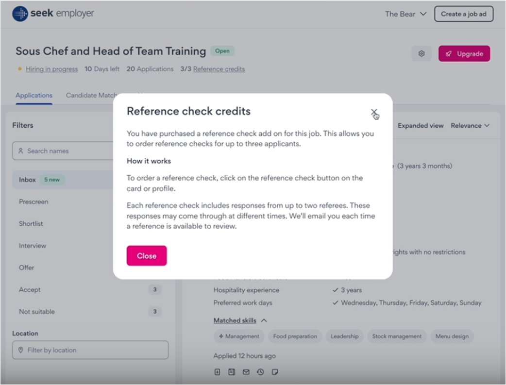 於製作職位廣告時加購 Reference Check 服務,即可為每個職位最多三名應徵者啟動自動化背景查核。