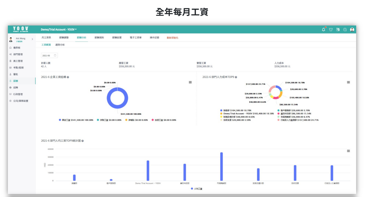很多公司也會提供14天或1個月的免費試用方案,但YOOV為了與中小企共渡時艱,近年推出了全年免費的方案。只要員工人數少於25人,企業就可免費使用一年。免費方案更可使用系統的所有功能,除了基本的薪酬計算,你可以透過系統製作更表、審批假期、處理員工的考勤記錄等,讓你的管理更全面。