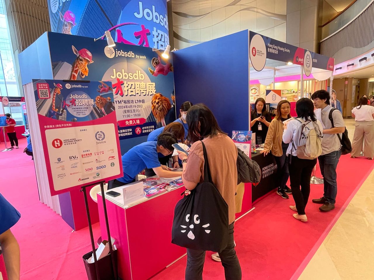 「人才招聘展」已於4月19-20日假觀塘YM² 裕民坊L1中庭順利舉行,共有19間公司參與,當中包括香港房屋協會、JEBSEN、機場保安有限公司, Beauty Express Group, 中原地產、安達人壽等,為求職者提供大量優質前線職位空缺,涵蓋航空,飲食,零售及美容業等多個行業, 在場僱主亦提供了不同行業的招聘資訊,還有即場面試機會