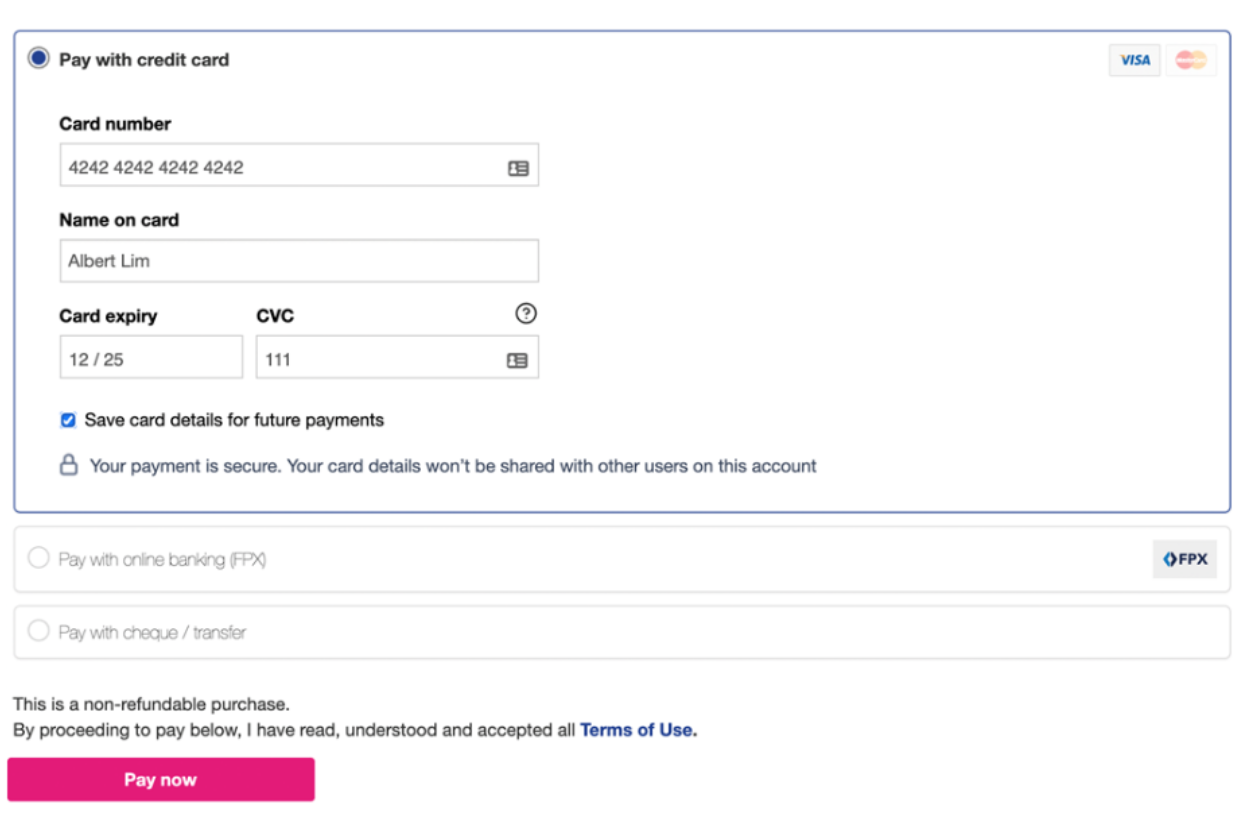 All you need to do is check ‘Save card details for future payments’ for your next credit card purchase. Your details will be saved for future purchases for ease and convenience.
