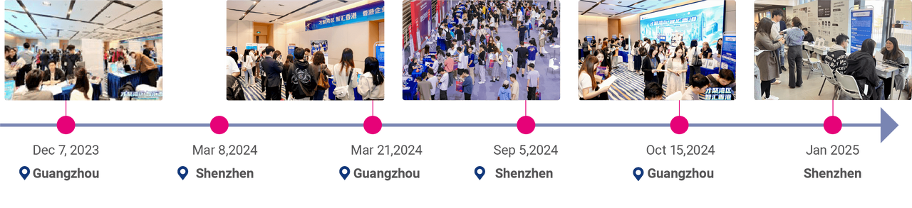 Our campus recruitment solutions in the Greater Bay Area provide direct access to top-tier university talent through specialised campus job fairs. In collaboration with Zhaopin, Jobsdb proudly presents three job fairs in Guangzhou and Shenzhen to connect you directly with talent in the GBA.