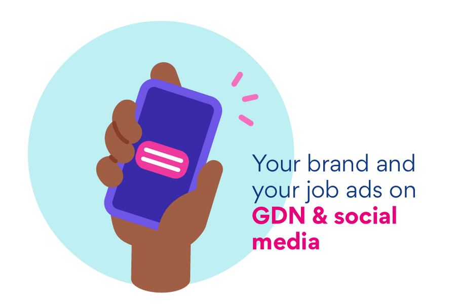 We advertise your brand and your job ads on Google Display Network and social media.
